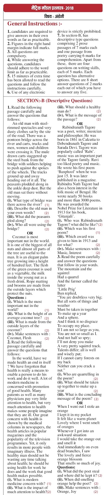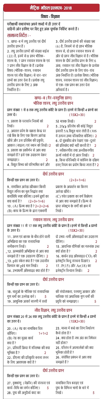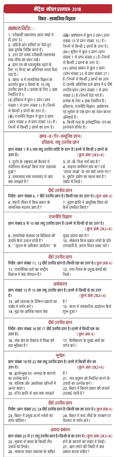- Bihar Board 10th Model Question Paper 2019
